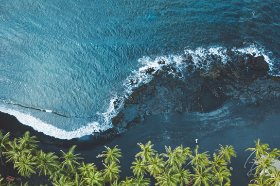 Skip the white sandy beaches and visit a Punaluu Beach with sand formed from the black lava of Hawaii Island's volcanoes. If you're lucky you may spot a native Hawaiian Green Sea Turtle resting on shore, but be sure to keep your distance as they are a protected species.